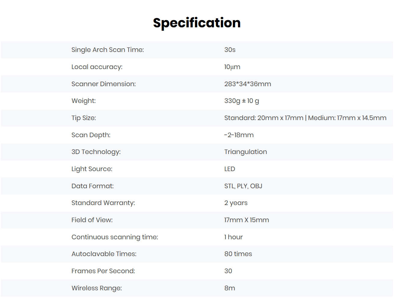 The device integrates seamlessly into digital workflows and supports open file formats such as STL, PLY, and OBJ, allowing easy collaboration with dental laboratories and CAD/CAM systems.