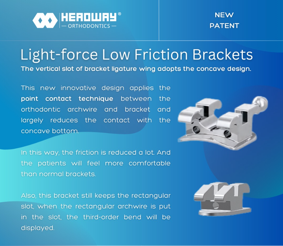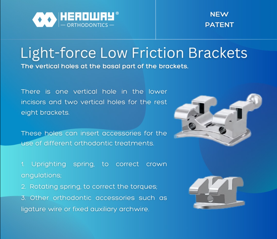 Light-force low friction ROTH brackets (Patented by Headway)