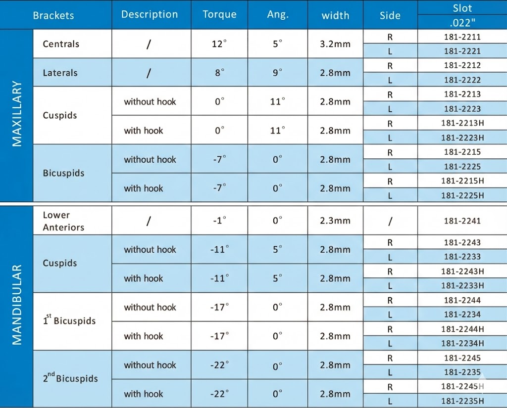 • True Rectangular Slot: Maintains full third-order torque expression when rectangular archwires are engaged.